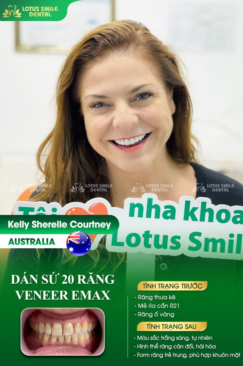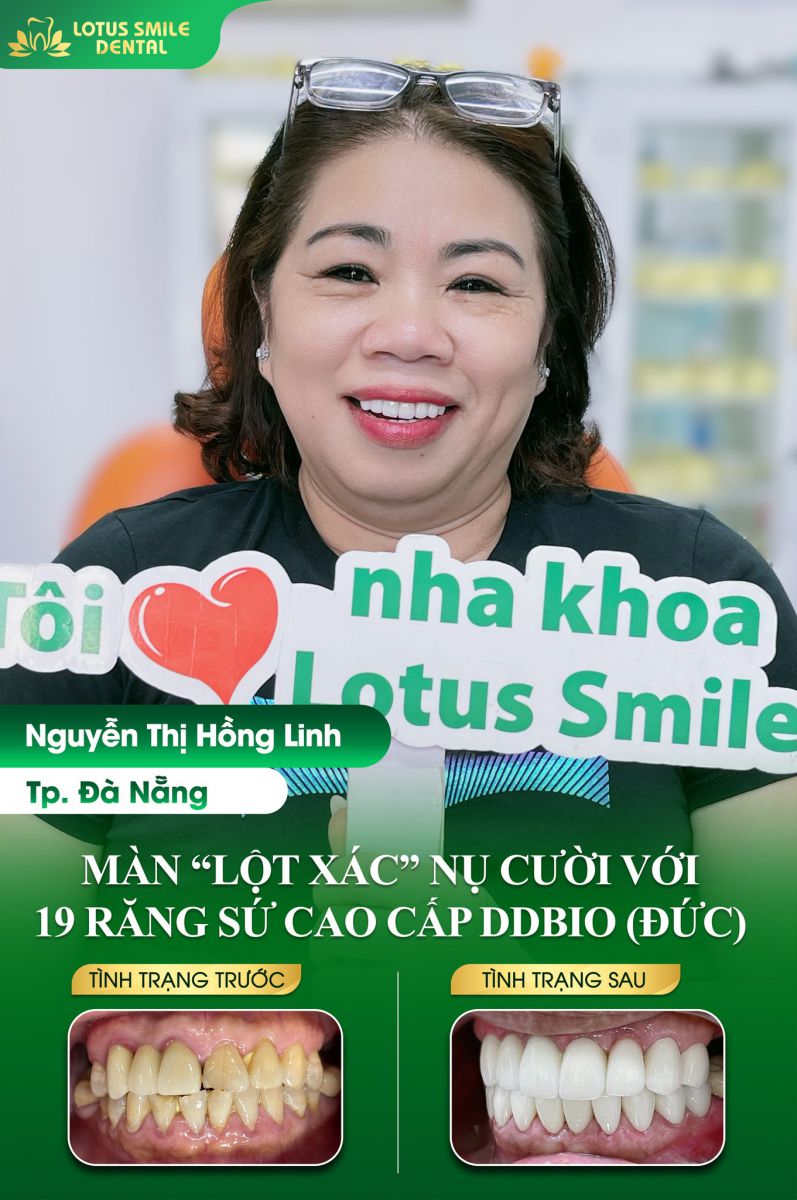 Chị Hải chia sẻ: "Quá tuyệt vời với diện mạo mới của chị khách hàng ở Đà Nẵng. Nha khoa Lotus Smile đã hoàn thiện Thẩm mỹ Dán sứ 20 răng Veneer Emax Press (Ivoclar - Đức) cho chị khách hàng và chị rất hài lòng với nụ cười duyên mới này.”