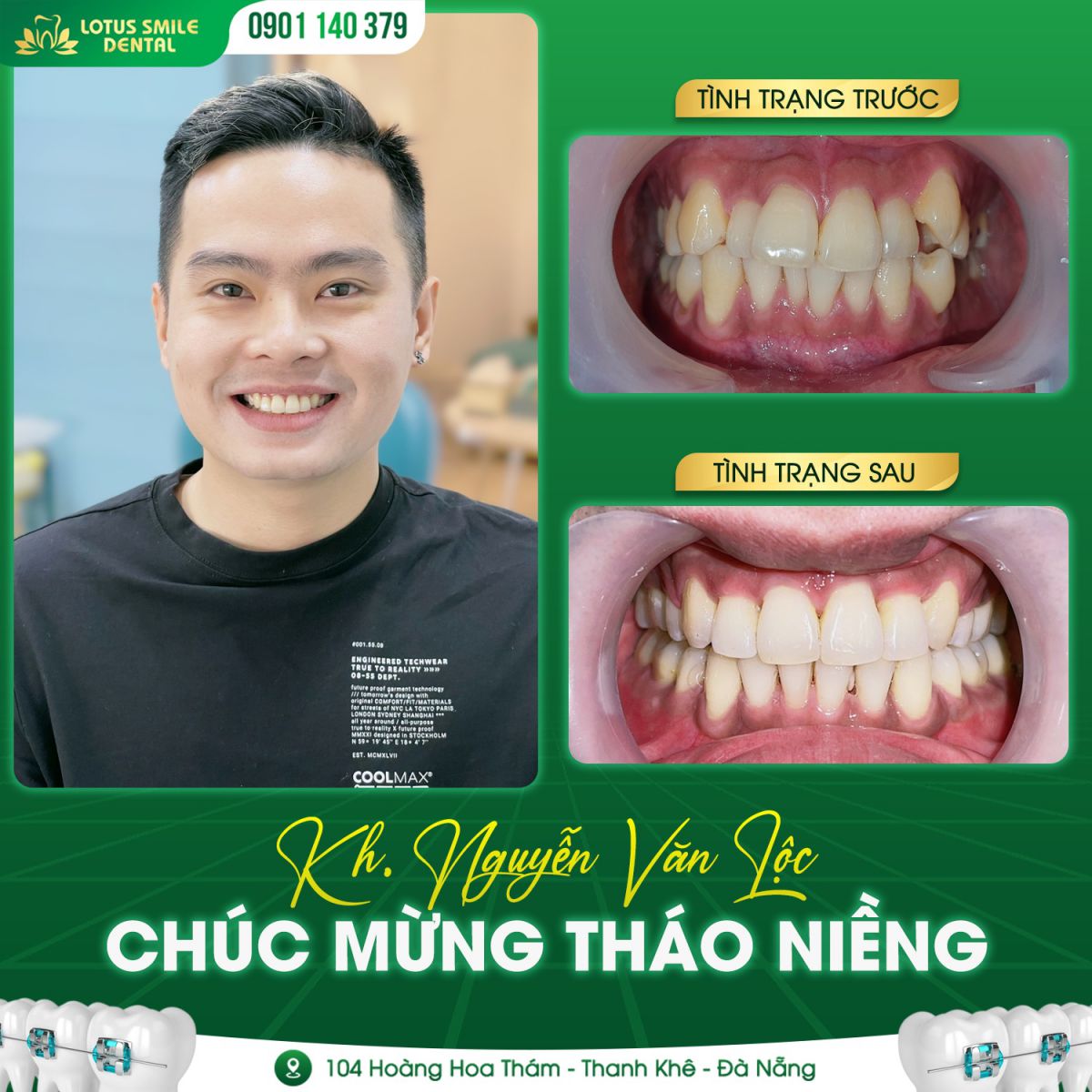 Nhiều khách hàng đã có kết quả niềng răng thành công tại Nha Khoa Lotus Smile , ngay cả với những trường hợp răng phức tạp. Nha Khoa Lotus Smile là địa chỉ niềng răng uy tín tại Đà Nẵng, nơi bạn có thể hoàn toàn yên tâm khi lựa chọn.