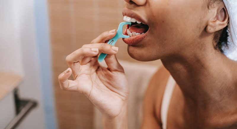 Sau khi ăn uống, bạn nên dùng chỉ nha khoa để vệ sinh răng