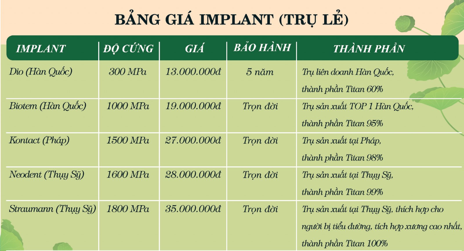 BẢNG GIÁ CẤY GHÉP IMPLANT NHA KHOA LOTUS SMILE NĂM 2024
